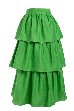 Nuestra romántica falda de volantes está confeccionada en lino, una prenda fresca perfecta para el verano. Elige entre 3 colores brillantes.