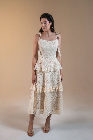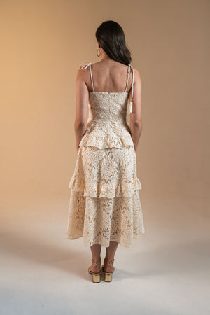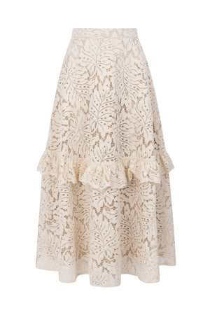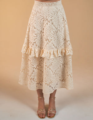 Falda midi de encaje con volantes - Beige vainilla - Edición limitada