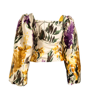 O top ballon na estampa floresta selvagem confere elegância e atitude ousada ao mesmo tempo. A silhueta é feminina e o tecido super confortável para um look primaveril perfeito. Combine com calça reta para um visual único.
