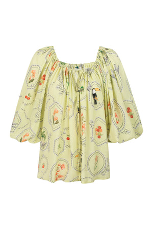Blusa Linho Boho com Manga Puff - Verde Menta
