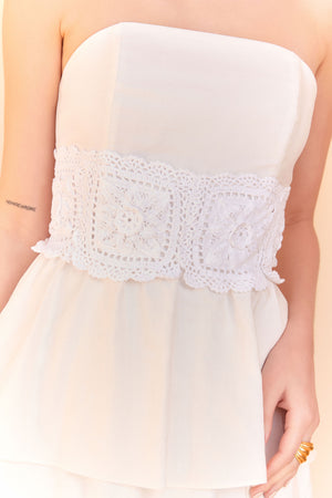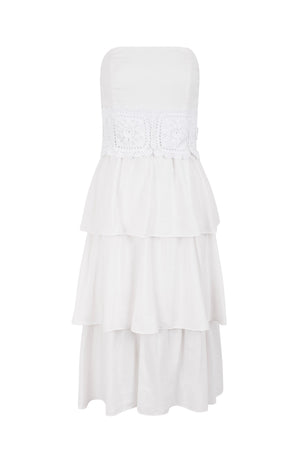 Adicione um toque romântico e feminino ao seu guarda-roupa com o nosso Vestido Boho Crochê sem Alças em Rosa Lavanda. Com um lindo detalhe em crochê, camadas de babados e comprimento midi, este vestido é perfeito para um passeio ou uma ocasião especial. Abrace o estilo boêmio e chique com um toque de lavanda.