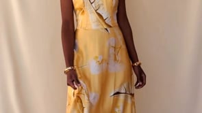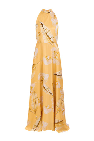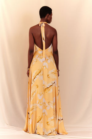 VESTIDO MAXI BIANCA CETIM - MOSTARDA