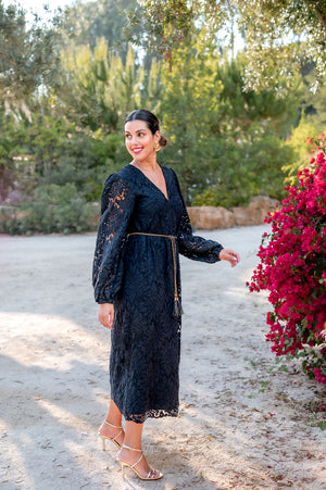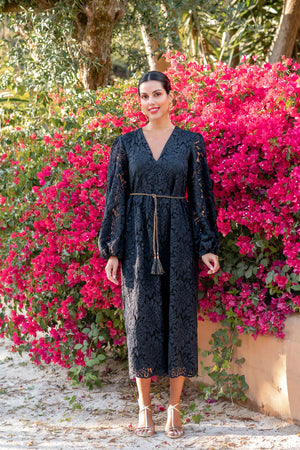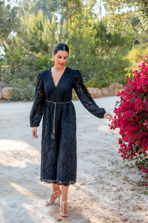 Presenteie-se com um visual elegante e luxuoso com este lindo vestido em renda midi. Com renda delicada e modelagem solta e confortável, é a combinação perfeita de feminilidade e sofisticação. O acabamento de alta qualidade completa o visual, perfeito para ocasiões especiais! Compre moda de luxo agora!