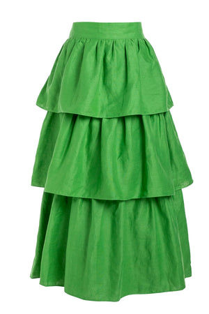 SAIA DE LINHO COM FOLHOS - VERDE