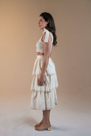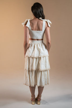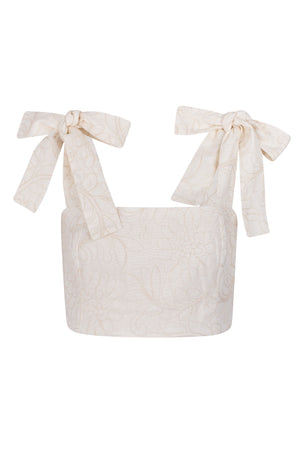 Crop Top Bordado com Alça de Amarrar - Bege Baunilha