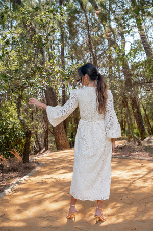 Presenteie-se com um visual elegante e luxuoso com este lindo vestido em renda midi. Com renda delicada e modelagem solta e confortável, é a combinação perfeita de feminilidade e sofisticação. O acabamento de alta qualidade completa o visual, perfeito para ocasiões especiais! Compre moda de luxo agora!