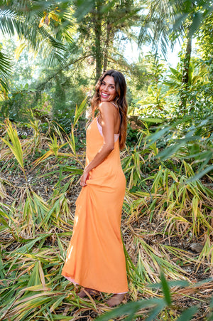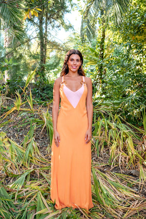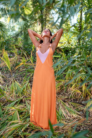 VESTIDO LONGO DE VERÃO - LARANJA CLARO