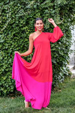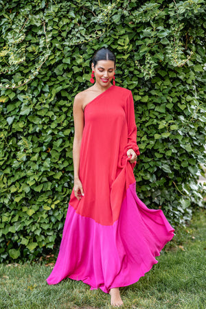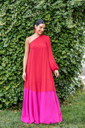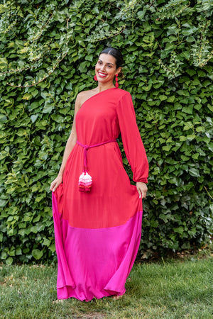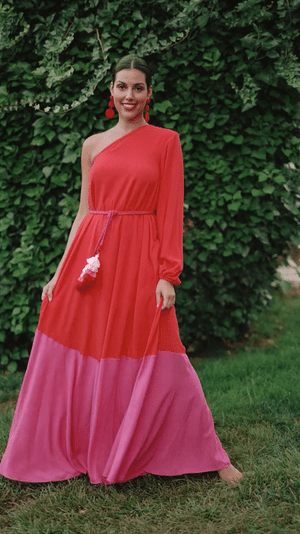 VESTIDO OMBRO ÚNICO LONGO - VERMELHO
