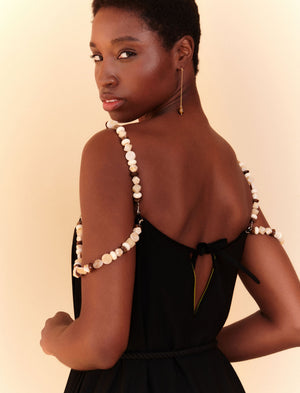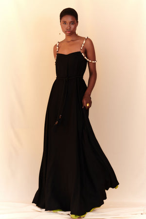 Apresentando nosso VESTIDO MAXI REVERSÍVEL, uma peça versátil e luxuosa em preto e verde. Feito com 2 lados, um com um preto chique com um cinto de cordão e o outro com bolsos em um verde vibrante. Este vestido vem com 4 alças intercambiáveis, permitindo que você personalize seu visual sem esforço. Eleve seu guarda-roupa com este vestido exclusivo.