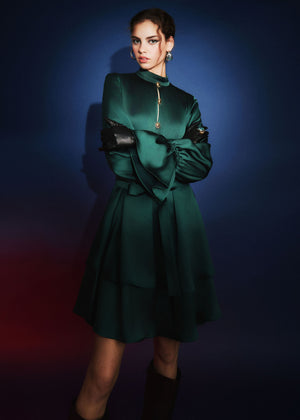 Home O MAGO - VESTIDO CURTO CETIM VERDE ESMERALDA