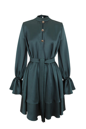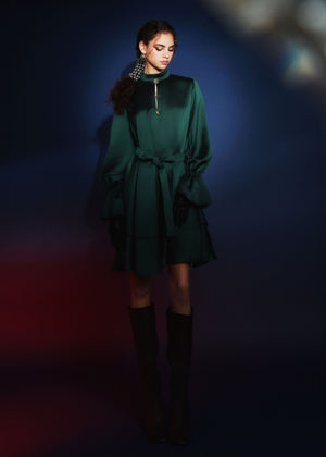 O MAGO - VESTIDO CURTO CETIM VERDE ESMERALDA