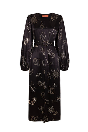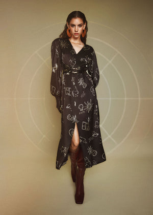 O MUNDO - VESTIDO MIDI CETIM PADRÃO TAROT