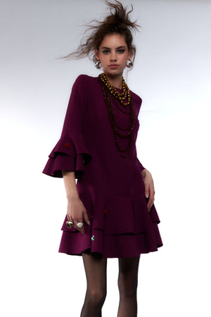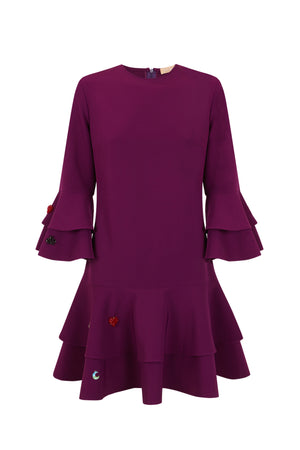 A TOLA - VESTIDO CURTO BABADOS COM LUCK CHARMS - ROXO